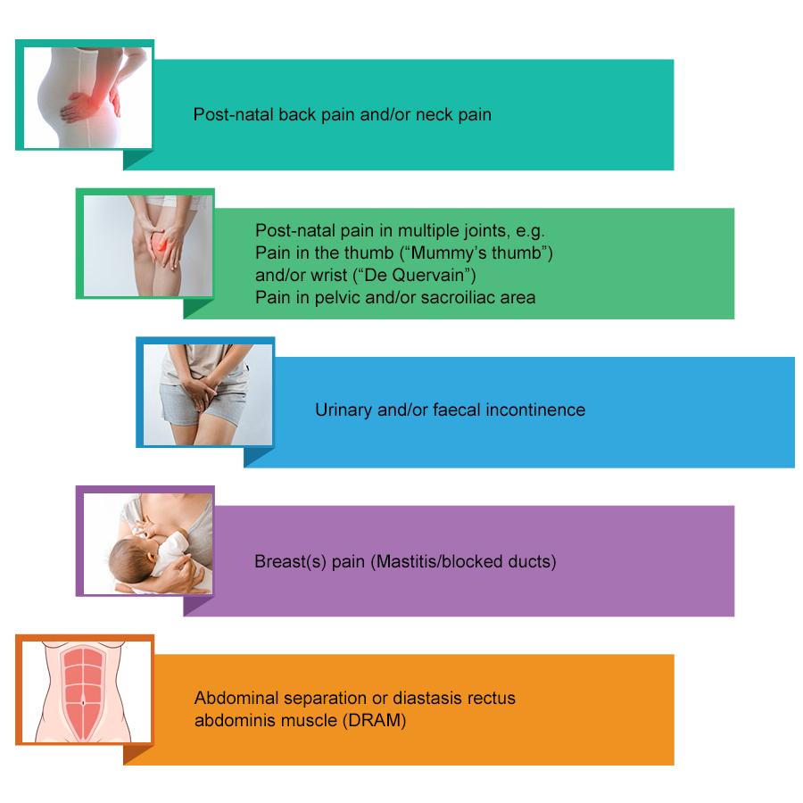 Women can experience a variety of conditions during their post-natal period, including: